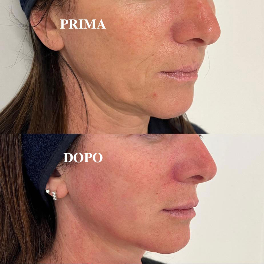 Mediante utilizzo di BIORIVITALIZZANTI, ACIDO IALURONICO, TOSSINA BOTULINICA e FILI DI TRAZIONE, possiamo ottenere una ridefinizione del profilo del viso ed un effetto lifting.